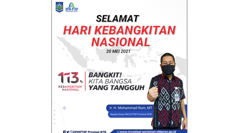 Selamat Hari Kebangkitan Nasional ke 113 Tahun 20 Mei 2021 “Bangkit! Kita Bangsa Yang Tangguh!” #HariKebangkitanNasional2021 #HarKitNas2021 #NTBRamahInvestasi #DPMPTSPNTB