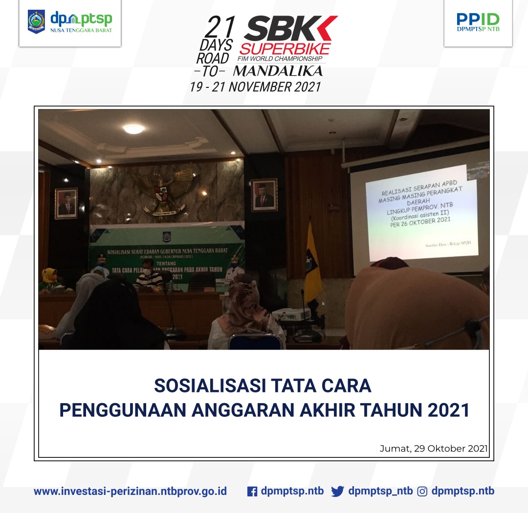 Pagi ini (Jumat, 29 Oktober 2021) DPMPTSP Provinsi NTB menghadiri kegiatan sosialisasi tentang Tata Cara pelaksanaan anggaran pada akhir tahun anggaran 2021.