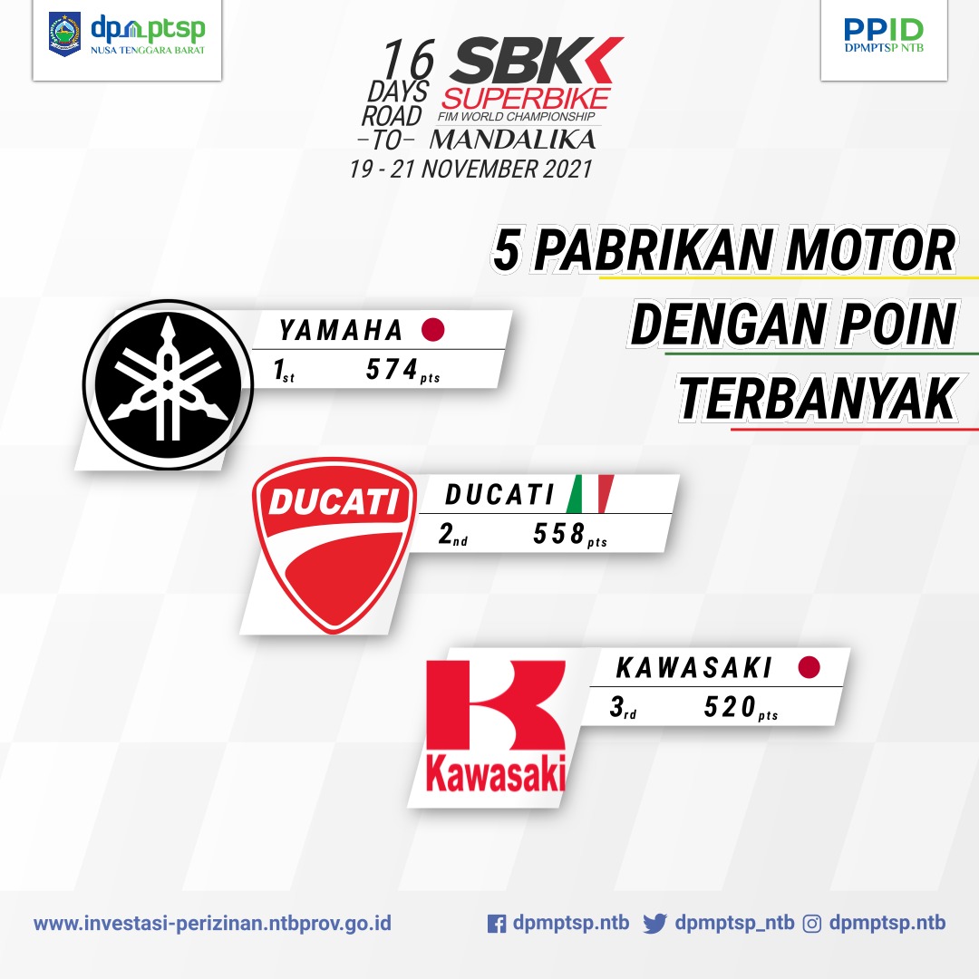 Ini dia nih, 5 pabrikan top yang mendapatkan poin tertinggi pada ajang WSBK 2021
