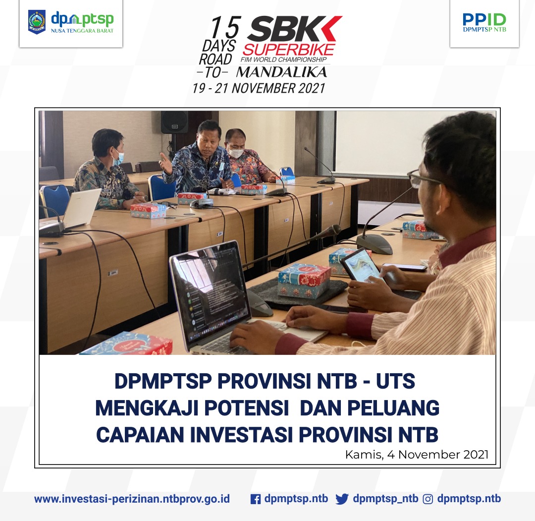 Dalam kunjungan yang berlangsung hangat dan menarik tersebut, DPMPTSP Prov NTB dan UTS berbagi informasi dan usul saran dalam upaya meningkatkan pencapaian realisasi target sosial ekonomi Prov NTB yang tertuang dalam RPJMD Prov NTB 2019-2023 khususnya terkait capaian realisasi investasi di Prov NTB.