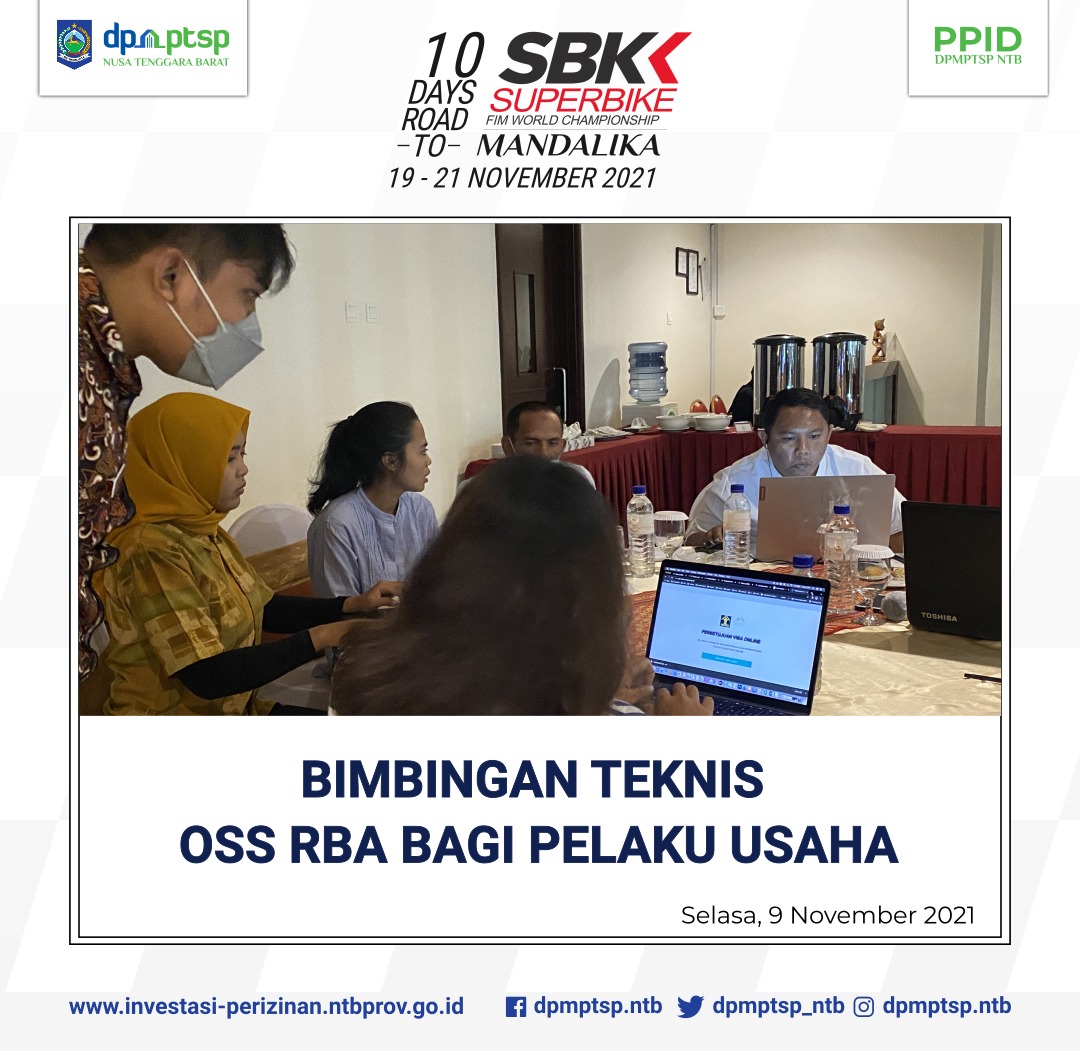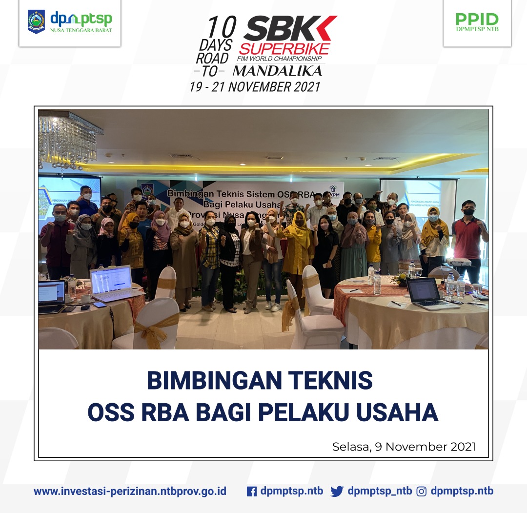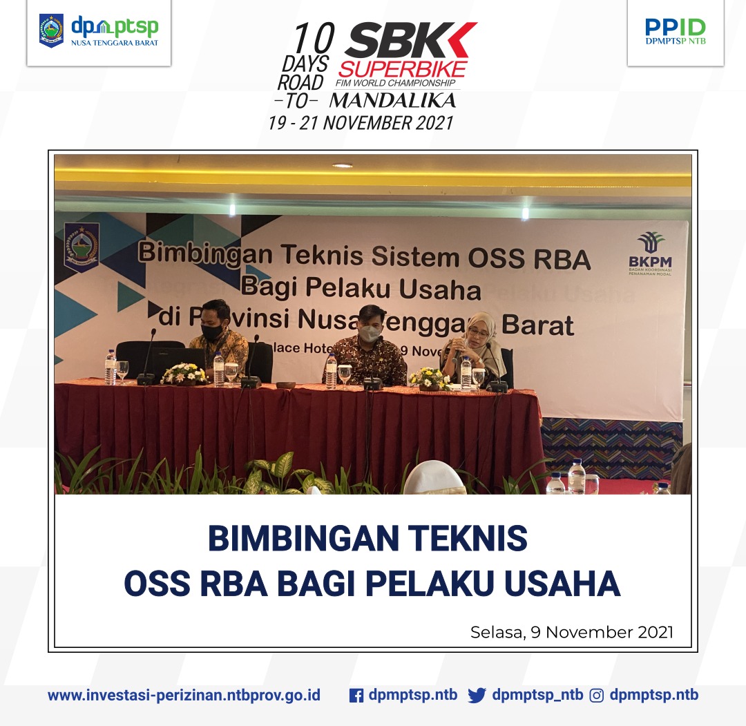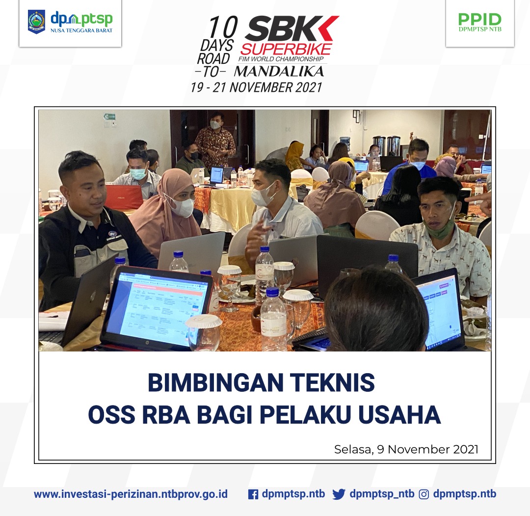 Dinas Penanaman Modal & PTSP Provinsi NTB menyelenggarakan kegiatan Bimbingan Teknis (BimTek) Sistem Online Single Submission Risk Based Approach (OSS-RBA) sebagai sebagai perwujudan DPMPTSP sebagai perwakilan Pemerintah Pusat dalam Penyelenggaraan Perizinan Berusaha di daerah (Selasa, 9/11/21).