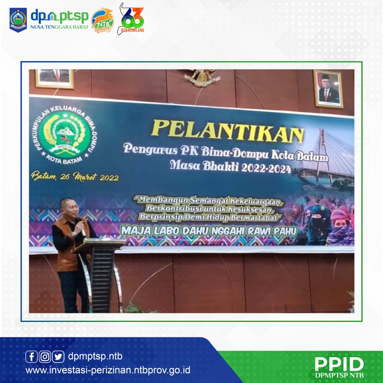 Kepala Dinas Penanaman Modal & PTSP Provinsi NTB, Ir. H. Mohammad Rum, MT. Melantik Pengurus Perkumpulan Keluarga Bima-Dompu Kota Batam.