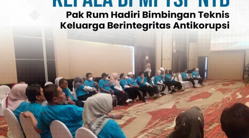 Kepala DPMPTSP Provinsi NTB, Ir. H. Mohammad Rum, MT beserta istri menghadiri acara Bimbingan Teknis Keluarga Berintegritas. Acara ini diselenggarakan oleh Direktorat Pembinaan Peran Serta Masyarakat (Dit. Permas) Komisi Pemberantasan Korupsi (KPK), bertempat di Golden Palace Hotel Mataram (6/10).