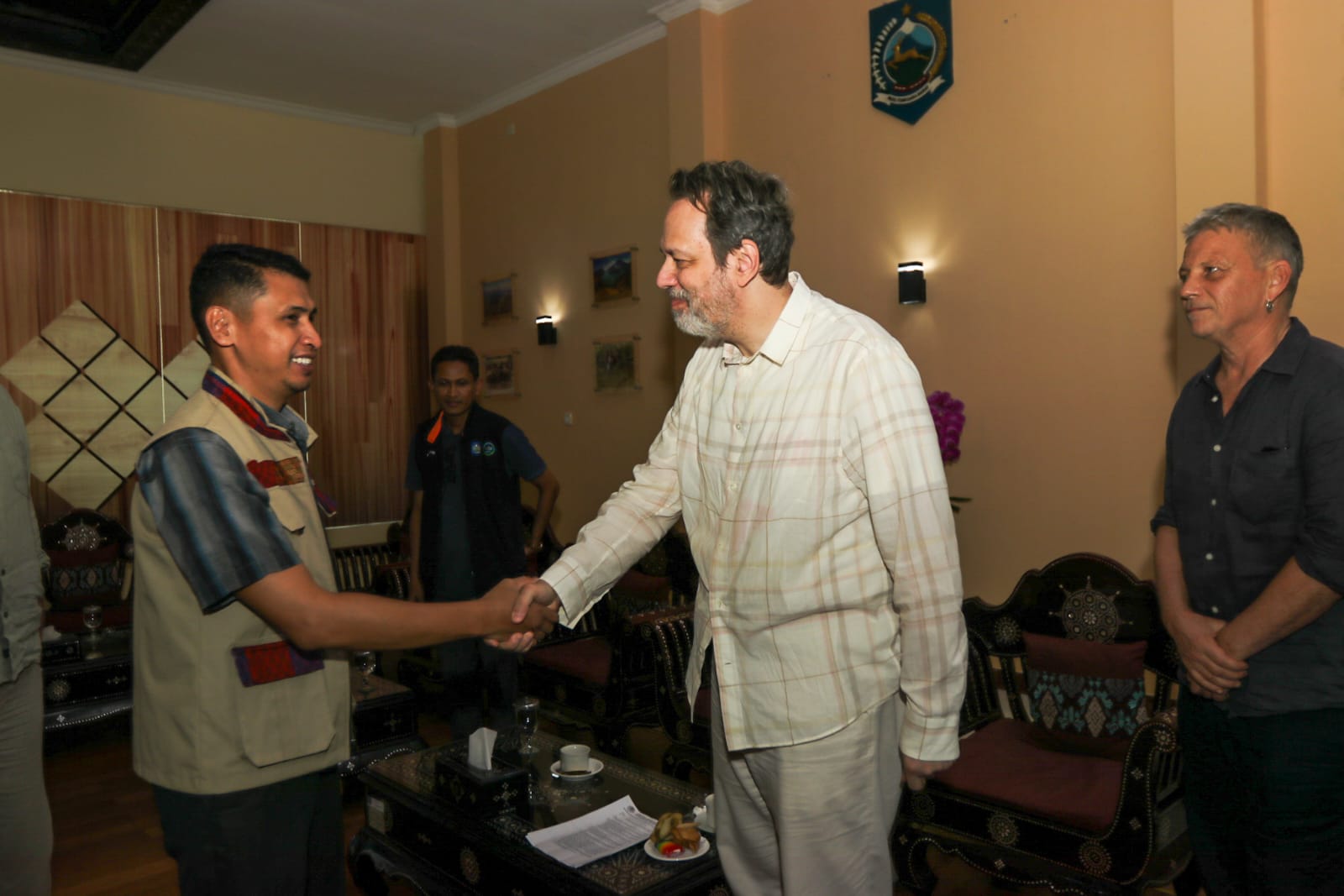 Pj. Gubernur NTB Drs. H. Lalu Gita Ariadi, M.SI di menyambut hangat kedatangan kunjungan Dubes Swedia Mr. Daniel Blockert beserta istri hari ini di VIP BIZAM (25/11).