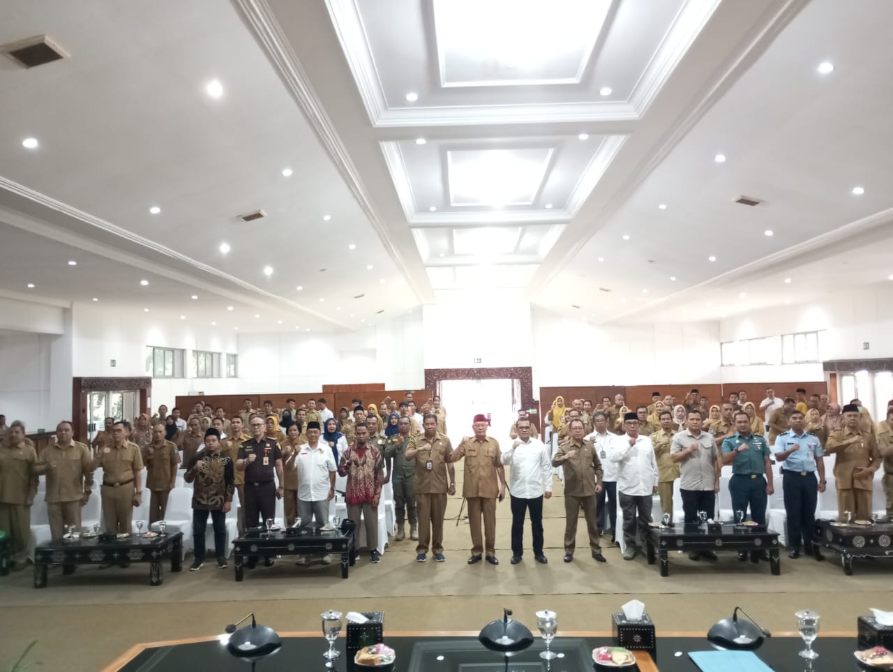 Kepala DPMPTSP Prov. NTB, Wahyu Hidayat, S.STP., MAP beserta kepala OPD lain lingkup Provinsi NTB, Anggota forkopimda NTB, para asisten dan staf ahli menghadiri acara ini.