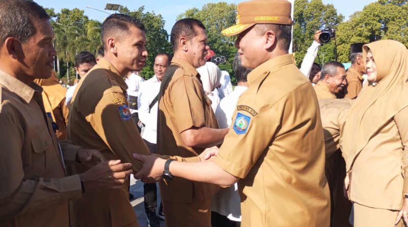 Hari Pertama Kerja Pemprov NTB Gelar Apel dan Halal Bihalal di Lapangan Bumi Gora Kantor Gubernur NTB.